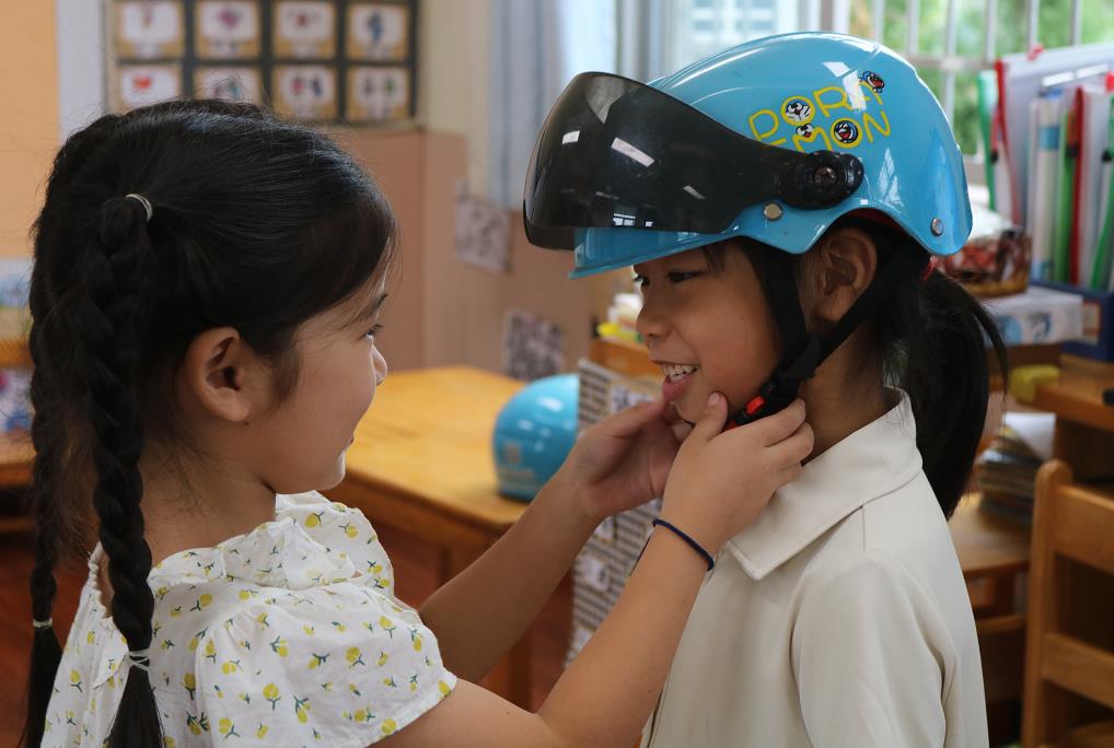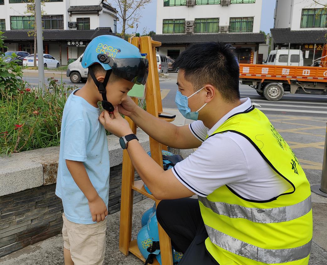 老師們利用國旗下講話、主題教育活動、游戲競賽的形式為孩子帶來一場生動有趣的交通安全課。以通俗易懂的語言向小朋友講解了乘坐電瓶車以及安全出行的知識,手把手教孩子正確佩戴頭盔的方法,鼓勵孩子通過"小手拉大手",告訴自己的爸爸媽媽和身邊親人,騎乘規(guī)范佩戴頭盔的重要性,安全出行,做一個文明交通參與者。