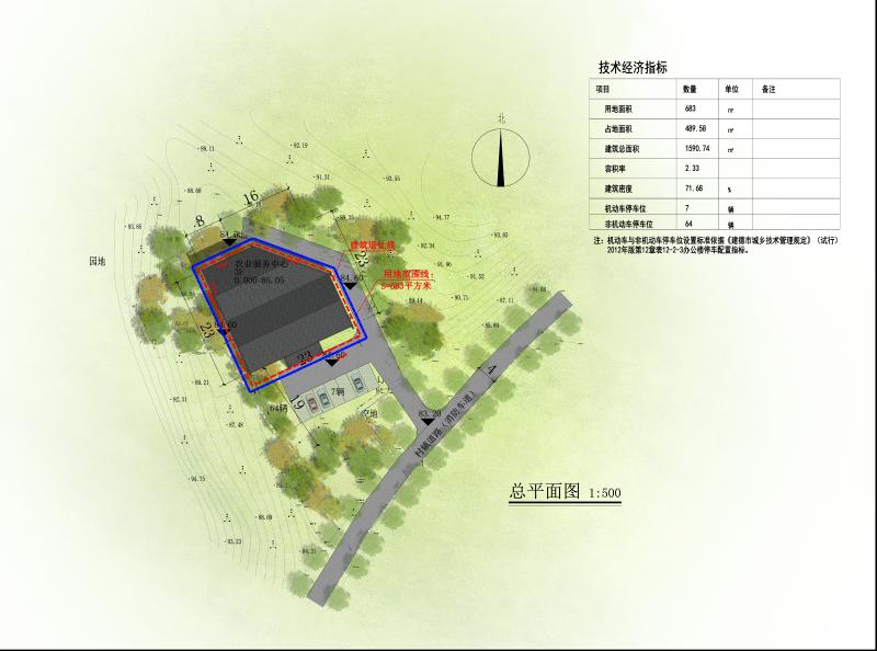 本項目基地位于建德市大同鎮(zhèn)郎家村內(nèi),總用地面積為683㎡,項目容積率≤2.5,建筑密度75%,建筑限高24米。