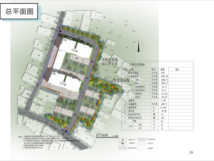 地塊用地面積為5651平方米(具體以實(shí)測為準(zhǔn)),用地性質(zhì)為二類居住用地(R2),容積率1.166%,建筑密度19.24%,綠地率20.5%,建筑高度≤30米,出入口位于南側(cè)。