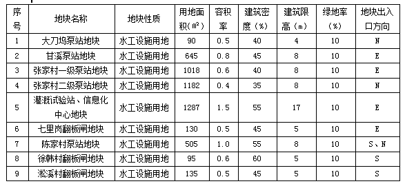 項(xiàng)目概況:本項(xiàng)目共涉及9個(gè)地塊,地塊總面積5087平方米(約7.63畝),分別位于更樓街道(6個(gè))、壽昌鎮(zhèn)(1個(gè))、大同鎮(zhèn)(2個(gè)),調(diào)整后用地性質(zhì)均為水工設(shè)施用地(U32),各地塊控制指標(biāo)如下表。