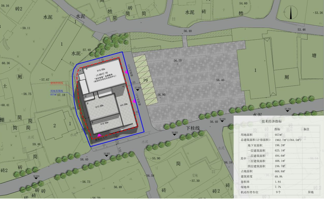 項目概況:本項目為“浙農智富”品牌基地(桂花村鄉(xiāng)創(chuàng)文化活動中心),位于建德市壽昌鎮(zhèn)桂花村。該地塊現(xiàn)狀為閑置籃球場及空地,南側緊鄰道路,北側西側為農戶,東側為廣場。本項目用地面積為957平方米。地塊內擬建“浙農智富”品牌基地(桂花村鄉(xiāng)創(chuàng)文化活動中心)1幢(總建筑面積為1962.7平方米,其中地上建筑面積為1764.5平方米,地下建筑面積為198.2平方米,建筑占地面積為668.8平方米。)