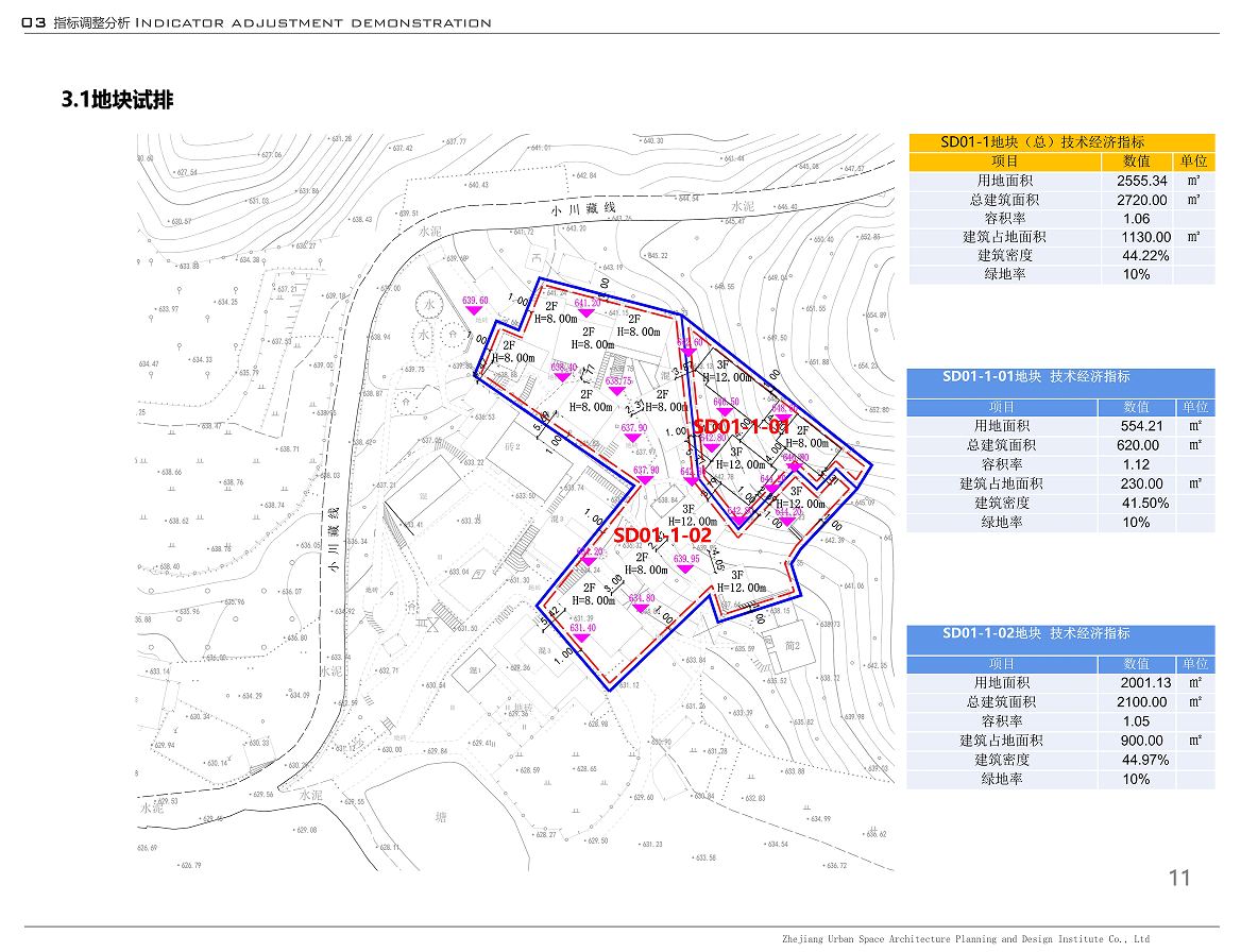 SD1-1-01地塊調整后用地性質為農村社區(qū)服務設施用地(0704),總用地面積554.21平方米,容積率1.0≤FAR≤1.5,建筑密度≤45%,建筑高度≤12米,綠地率≥10%;