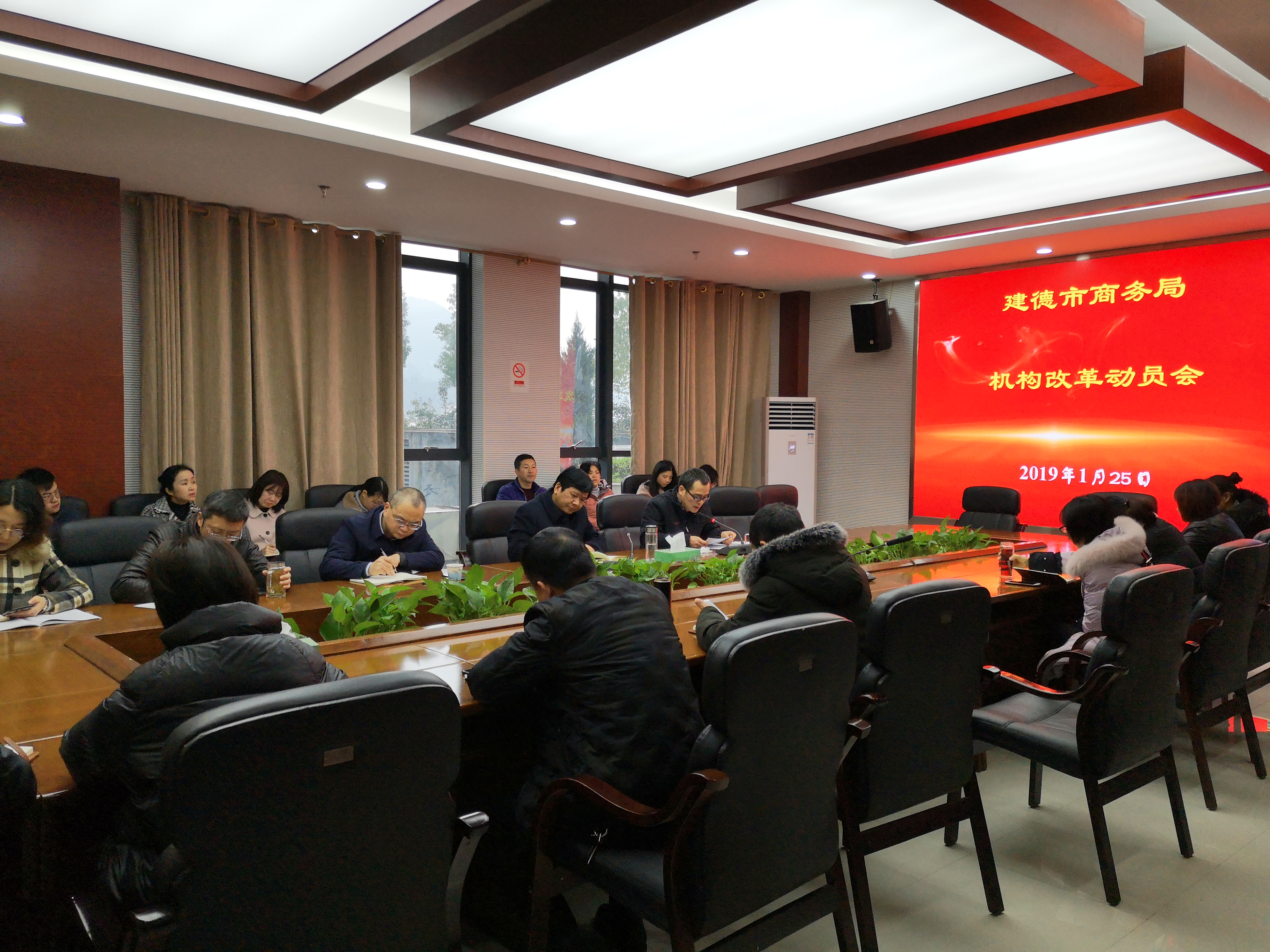 1月25日,市商務(wù)局召開機構(gòu)改革動員大會,傳達全市機構(gòu)改革動員大會精神,深入貫徹落實全市機構(gòu)改革人員轉(zhuǎn)隸和部門“三定”工作動員培訓(xùn)會精神,研究部署該局相關(guān)工作。局黨組書記、局長謝照昌出席會議并講話,局領(lǐng)導(dǎo)班子及全體干部職工參加會議。