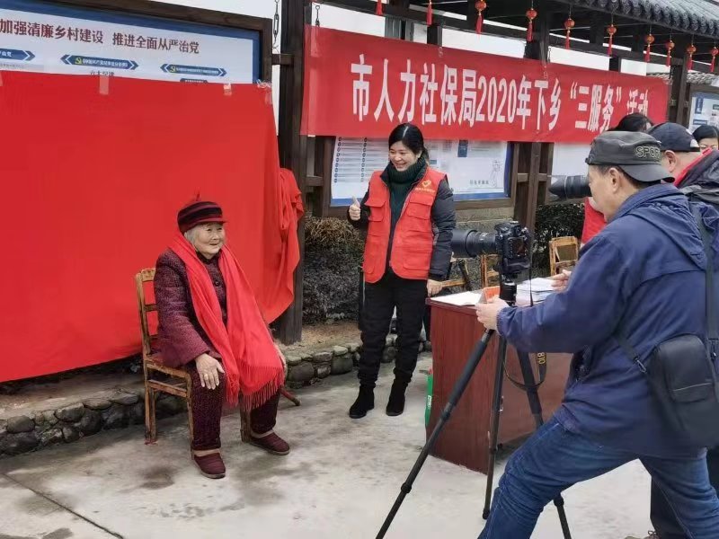 1月12日,臘月十八,市人力社保局利用周末時間赴蓮花鎮(zhèn)戴家村開展“三服務”活動。恰逢戴家村年俗節(jié),游人如織,玉米粿、蒸年糕的香味爭著往人鼻子里鉆,鑼鼓喧天中,人人臉上都是笑容。戴家村的村民徐奶奶坐在簡易的紅布前拍了她今年最新的一張照片。市人力社保局的工作人員記下她的地址,等照片沖洗好,將通過郵政寄回給她。徐奶奶很高興,趕緊轉到領春聯的隊伍里排隊。