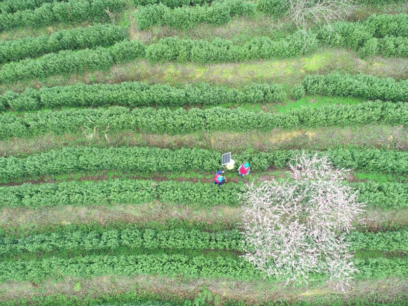 3月16日,在建德市大同鎮(zhèn)盤山村慧芝茶園里,茶樹茶芽青翠欲滴,如玉帶沿溪谷延綿,“采茶女”身影穿梭其間,巧手采擷一芽一葉,成為燦爛春色中的靚麗風(fēng)景,也滋養(yǎng)著一代代的建德苞茶。然而在片片綠色中,點(diǎn)點(diǎn)“紅色”也行馳其間,為建德市的品牌“苞茶”開足馬力護(hù)航保電。