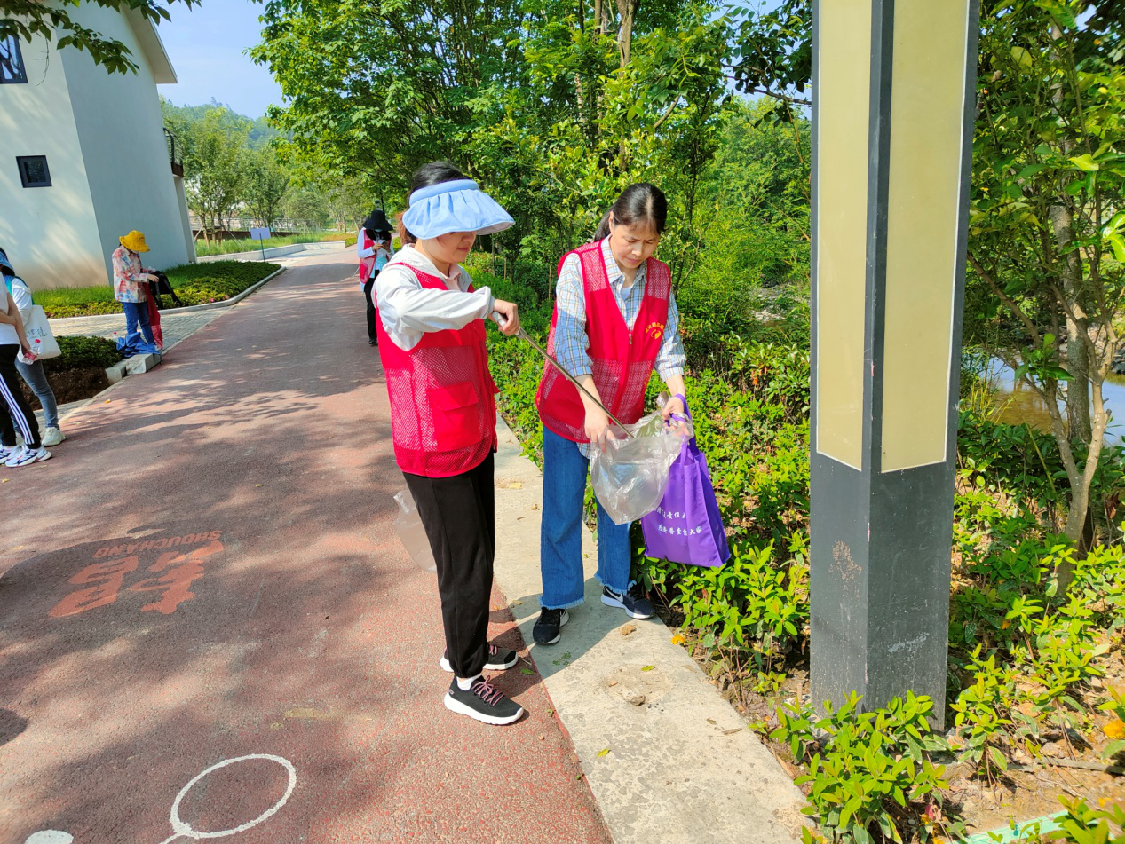 活動中,統(tǒng)計局的干部職工們一邊走,一邊認真的清理路邊、綠化帶、河道旁的煙蒂和廢紙巾。在河邊看見外來入侵物種福壽螺的卵帶,也會順手用拾撿器鏟除。大家分工合作、配合默契,時不時得到來往游客及田間村民的點贊。