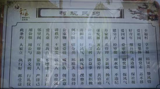 幸福村負責人介紹:“傳統(tǒng)的村規(guī)民約字多難記,通過修改成三字經(jīng)的形式,方便男女老少推廣。下一步幸福村將把新修訂的村規(guī)民約通過幸福播報廳、村村通小喇叭、堂前燕理論宣講等形式進行宣傳。