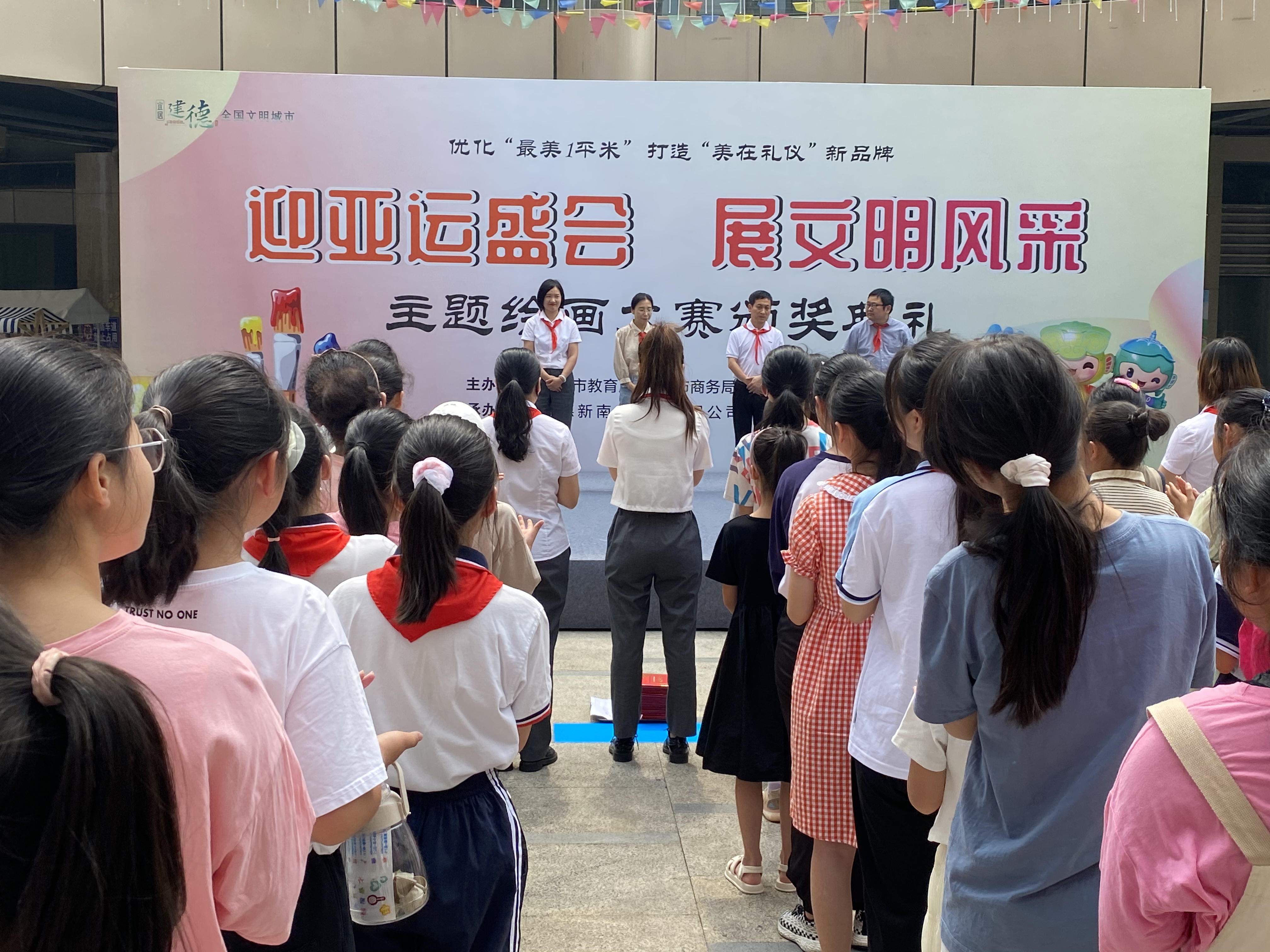 近日,市教育局開展“迎亞運盛會展文明風采”主題繪畫大賽,全市54所中小學4.3萬余名學生參加本次活動。經(jīng)過初選,共有115幅優(yōu)秀繪畫作品進入決賽,最終選出一等獎15名、二等獎30名、三等獎40名、優(yōu)秀獎30名。