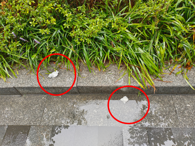 新安江廣場附近綠化帶內(nèi)有垃圾