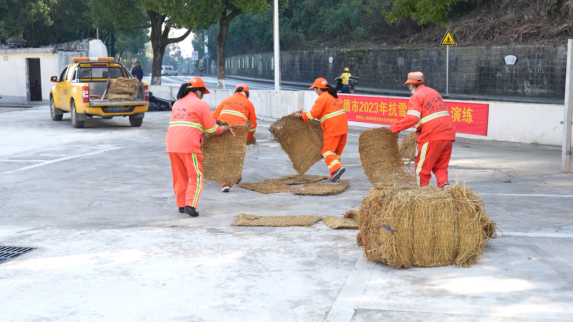 此次演練模擬受強冷空氣南下影響,全市出現(xiàn)強寒潮天氣過程,建德市防指辦迅速組織會商研判,部署抗雪防凍工作。受降雪天氣影響,建德市新安江街道道路和橋面積雪厚度已達6厘米,高山道路部分路段出現(xiàn)冰凍。在市防指指揮下,交通運輸、綜合執(zhí)法部門立即按照應急預案及工作要求展開行動。