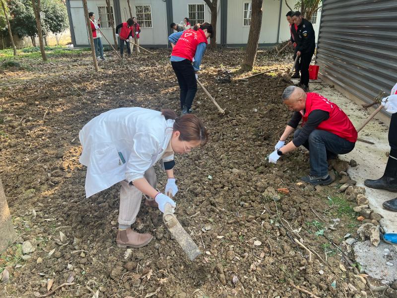 植樹活動(dòng)現(xiàn)場(chǎng)個(gè)個(gè)干勁十足,黨員干部們分工協(xié)作,挖坑扶苗、揮鍬填土、壓平踏實(shí),道道工序細(xì)致認(rèn)真,有條不紊,每個(gè)環(huán)節(jié)都一絲不茍。經(jīng)過(guò)三個(gè)多小時(shí)的揮汗奮戰(zhàn),新栽下的菊花、玫瑰、金銀花等各類中草藥共200余株盎然挺立,在春日的陽(yáng)光中展現(xiàn)著蓬勃生機(jī)。