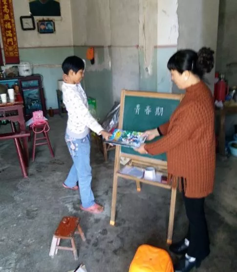 在大同一小,有這樣一個特別的孩子。陳同學出生時聰明活潑,卻因為一歲時一次意外摔跤,腦部受傷,智力落下殘疾,不能像正常兒童那樣快樂地到校上課。為了讓她能夠接受教育,大同一小請黃紅蓮老師為殘疾兒童“送教上門”。