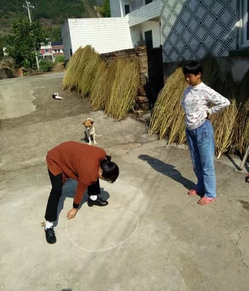 在“課間休息”時,黃老師帶著陳同學學習跳繩,玩“跳房子”等游戲活動。