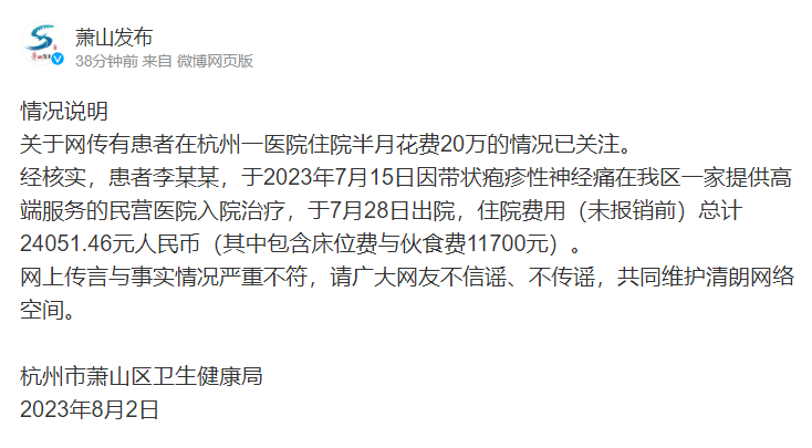 近日,有網(wǎng)民在今日頭條等平臺發(fā)文稱“李某某看病住院半月花費(fèi)20萬”,引發(fā)網(wǎng)民關(guān)注。