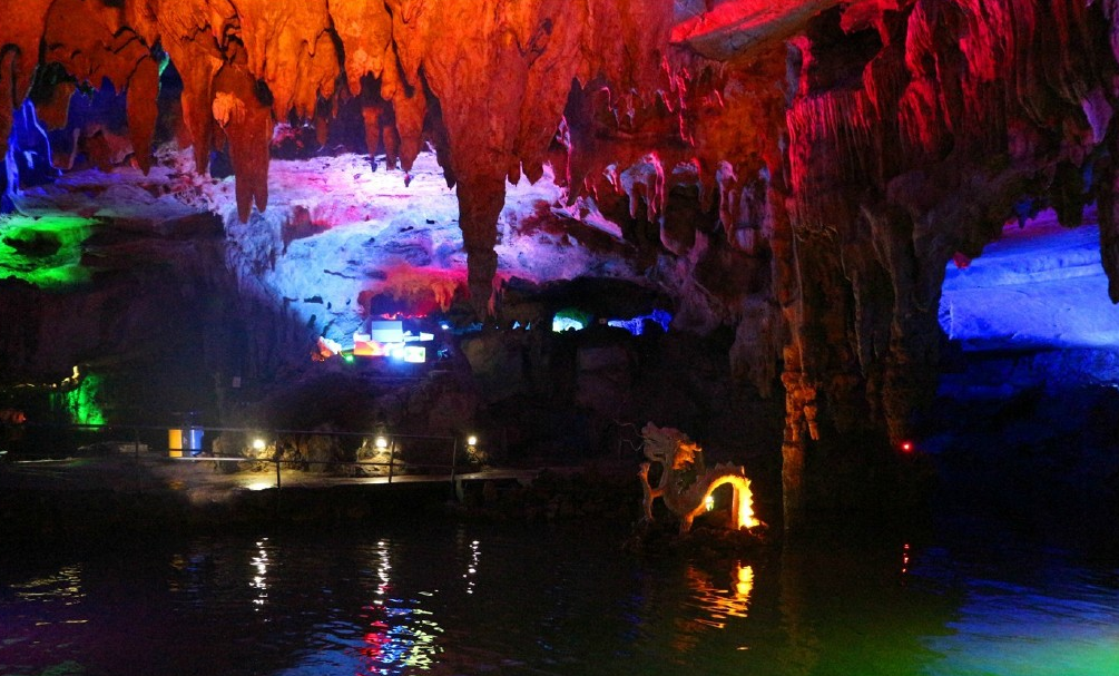 ?以喀斯特景觀為主、拍攝過《西游記》、《封神榜》、《梁?!返榷嗖坑耙晞〉撵`棲仙境,是國內(nèi)罕見的規(guī)模巨大、造型奇異的地下藝術(shù)宮殿;