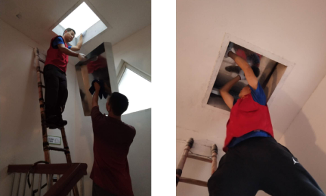 “你幫我扶下,我上去裝蓋板?!毕挛?點半,傅項軍便帶著緊急趕制的鐵皮蓋板前來法院路8幢樓頂了,而王津津也再次前來幫忙,在兩人的努力下,定制的鐵皮蓋板成功安裝了上去。而在短暫的休息后王津津便又趁著天黑趕去檢查樓道燈的情況了,而傅項軍又急匆匆地趕往客運中心修復公益廣告去了。