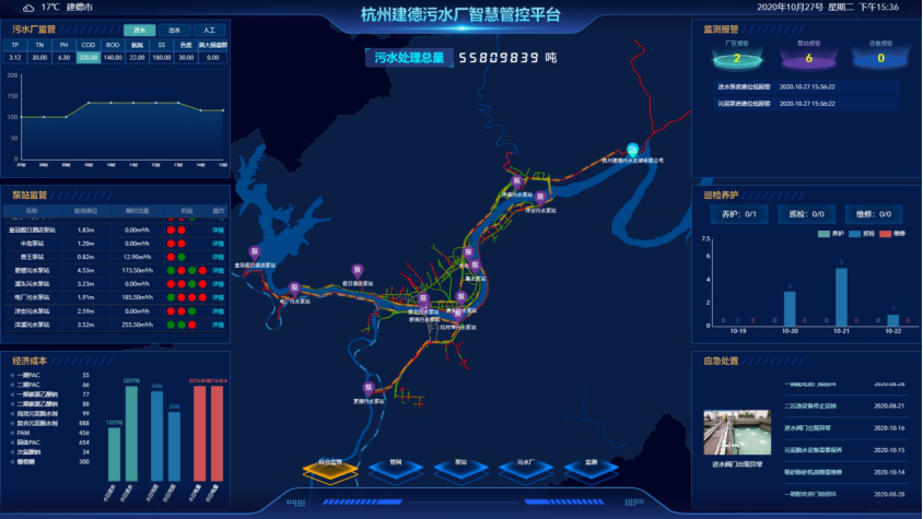 杭州建德污水處理有限公司于今年年初開始實(shí)施智慧管控平臺(tái)項(xiàng)目,耗資近300萬元,歷時(shí)近10個(gè)月,經(jīng)過十余次反復(fù)論證、研討和調(diào)試,最終于10月底投入試運(yùn)營(yíng)。該項(xiàng)目采用“廠站網(wǎng)一體化”新運(yùn)營(yíng)模式,能全面、快速、準(zhǔn)確地掌握建德城區(qū)及部分鄉(xiāng)鎮(zhèn)排水、管網(wǎng)各類資源數(shù)量及空間布局,以信息化帶動(dòng)管控精細(xì)化,全面提高科學(xué)管理水平。