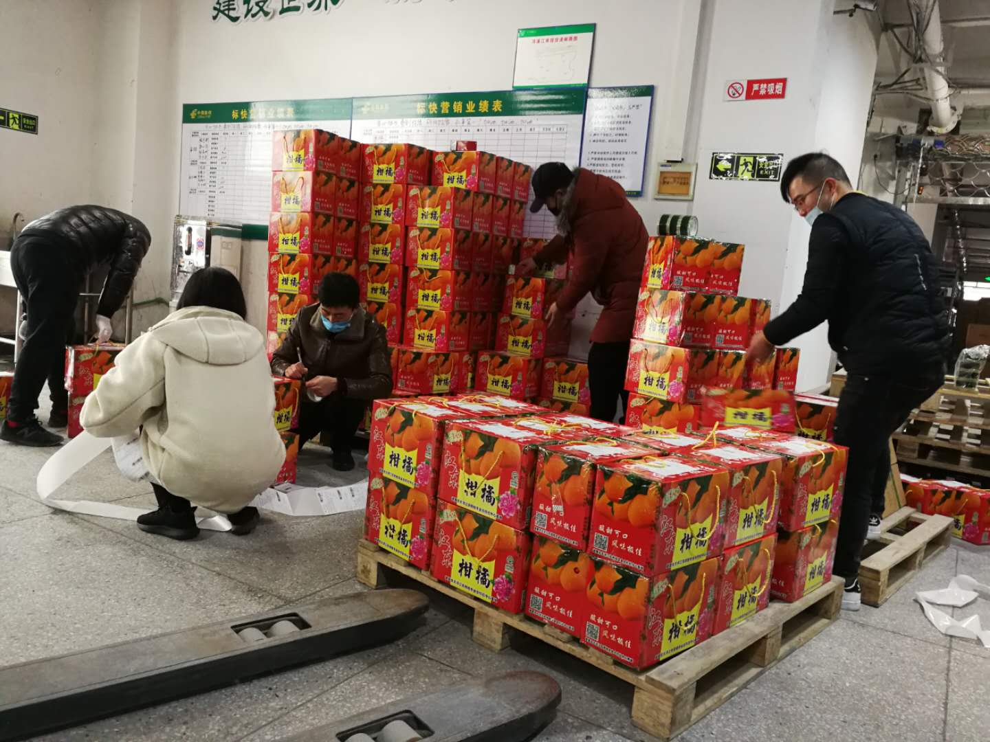 2月19日上午,在洋溪逸龍園的郵政電子商務中心,一群人正忙碌著將一箱箱椪柑打包、貼單、裝車,這是自18日開始來自江浙滬皖等各地在郵政線上平臺——“郵樂小店”及“建德市郵政”公眾號上下的第一批單子。