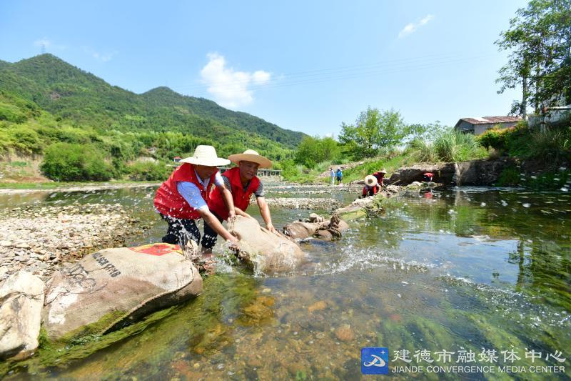 8月25日,更樓街道黨員先鋒隊(duì)的志愿者們來(lái)到壽昌江畔張家村段何家機(jī)泵房附近,對(duì)河灘上臨時(shí)攔水的堰壩進(jìn)行加高加固,保障良田灌溉。