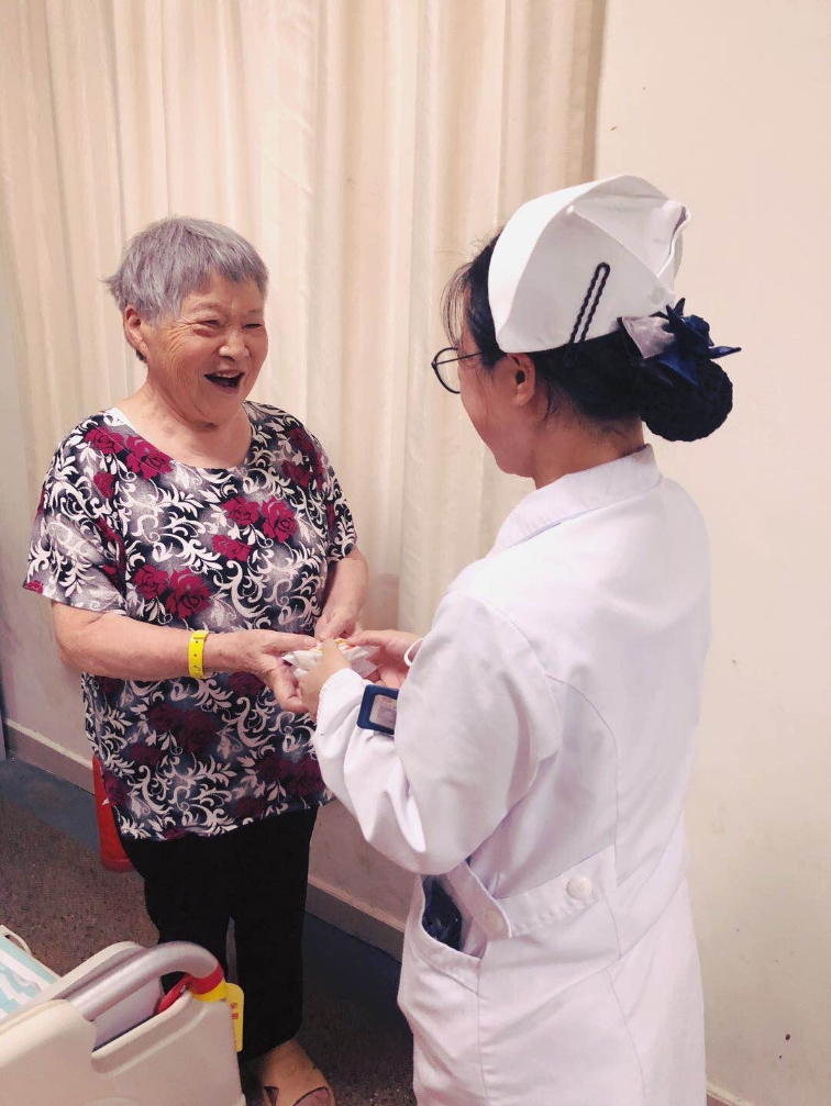 正值中秋來臨之際,桂花的芬芳開始在空氣中微微蕩漾,沁人心脾。一場(chǎng)秋雨過后,天氣也從早間的炎熱轉(zhuǎn)為涼爽,令人精神一振。老年康復(fù)科的幾位護(hù)士拿著準(zhǔn)備好的中秋月餅,開始送愛行動(dòng)。