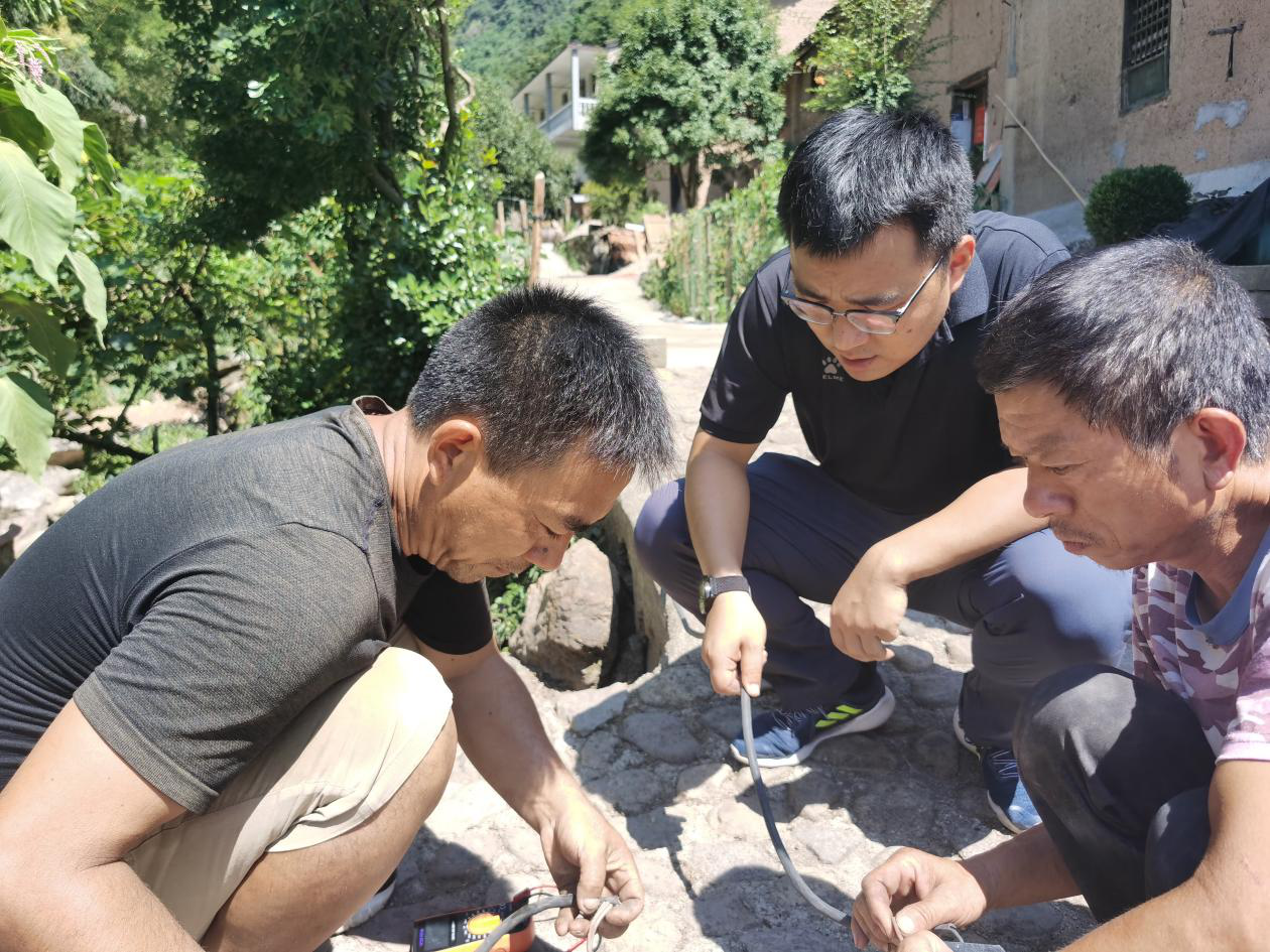 8月7日,張震利用周末時間再次來到施工現(xiàn)場,了解西塢自然村用水情況及現(xiàn)有深井泵放置位置,對水體實際提升高度進行測量,協(xié)助完成管道及電纜線鋪設(shè)路線,優(yōu)化原有供水管道。經(jīng)過實際測量,日供水量可達110立方米,基本滿足新源村西塢自然村日常生活用水需要。