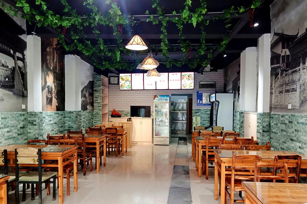 工作人員走進思念面館的店堂,不禁眼前一亮,全木質(zhì)仿古桌椅擺放整齊有序,青磚圖案的墻紙鋪設(shè)兩旁,墻壁上素色的梅城老照片搭配暖色的燈光,讓人感受到古鎮(zhèn)時光的靜謐。走進廚房一看,又是全新的現(xiàn)代化設(shè)施設(shè)備,地磚、墻磚、灶臺清爽整潔,保潔柜、消毒柜、冰箱、打荷臺等設(shè)備擺放有序。符合現(xiàn)代餐飲要求的設(shè)備設(shè)施與古色古香的店堂環(huán)境相結(jié)合,兼具餐飲食品安全與梅城古樸風(fēng)情?!耙郧暗昝徒兴寄蠲骛^,我希望客人在店里吃面的時候,能產(chǎn)生一些對老梅城古嚴(yán)州府的思念”,戴師傅說,店面的裝修風(fēng)格都是他自己一手設(shè)計的,梅城所干部在指導(dǎo)店面改造提升的時候,建議他能添加一些可以展現(xiàn)梅城古鎮(zhèn)風(fēng)情的元素,就是這句話提醒了他。