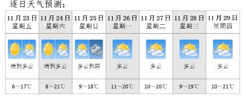 不過好在從本周三開始,雨水逐漸消退,冷空氣南下,天氣也開始轉(zhuǎn)晴。市氣象臺(tái)預(yù)計(jì),23日最低氣溫5到6℃,山區(qū)2到4℃,山區(qū)有霜或暗霜,今天最高氣溫16到17℃。