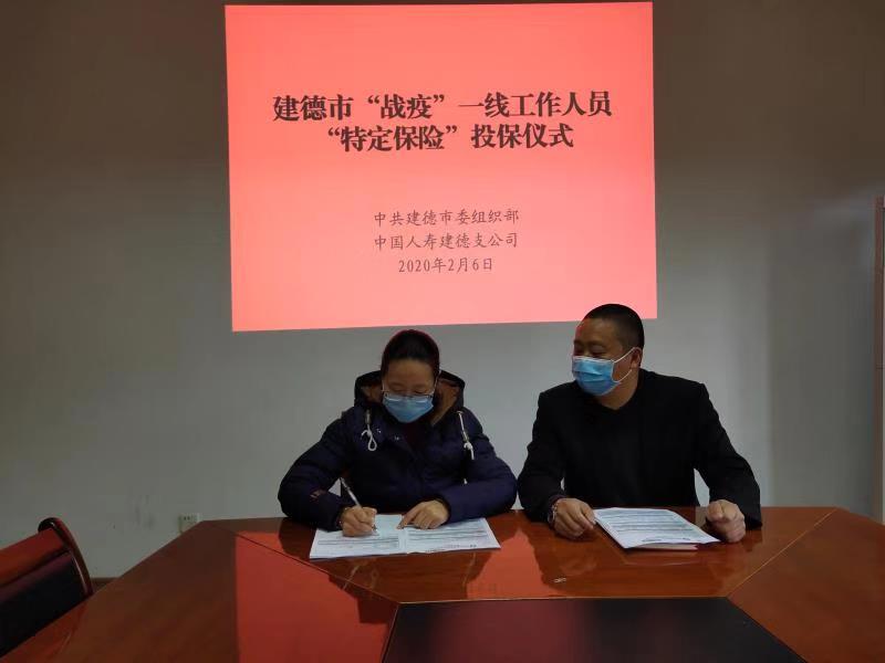 2月6日,建德市委組織部和保險公司簽下了抗“疫”一線人員為期5個月的特定保險合同。3500名防疫一線的工作人員,因確診為新型冠狀病毒肺炎導致傷殘及身故、從事疫情防控工作遭受意外傷害導致傷殘及身故和遭受意外傷害的分別可獲得最高50萬、50萬和2萬的保險賠付,保險開始日期追溯到2月1日。