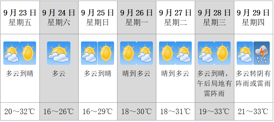 那么下周會(huì)下雨嗎?據(jù)氣象分析,這段時(shí)間雖然氣溫總體下降,但冷空氣偏干,缺少濕氣條件,因此雨水打擾的機(jī)會(huì)很少,預(yù)計(jì)未來幾天我市以多云天氣為主。從長期預(yù)報(bào)來看,9月26日以后,也就是下周,受副熱帶高壓西伸增強(qiáng)影響,我市將有一次升溫過程。