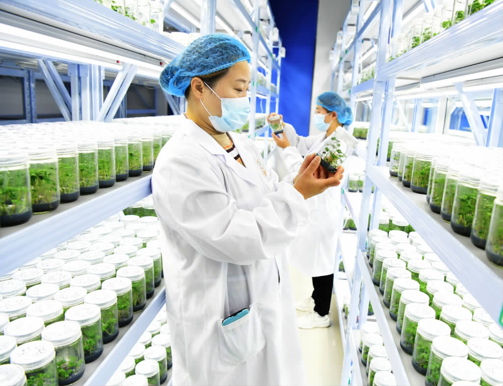 8月12日,在建德市新安種業(yè)有限公司的草莓三級(jí)育苗智能培育溫室里,技術(shù)人員正在25℃的溫度環(huán)境下,認(rèn)真察看玻璃瓶?jī)?nèi)無(wú)菌草莓植株的長(zhǎng)勢(shì)情況。今年以來(lái),該公司技術(shù)人員通過(guò)精準(zhǔn)采集紅顏、建德紅等14個(gè)草莓品種優(yōu)株上的匍匐莖,在智能培育溫室里進(jìn)行無(wú)菌脫毒組培育苗,每年可為農(nóng)戶(hù)提供15萬(wàn)株優(yōu)質(zhì)的原種苗作為草莓生產(chǎn)苗,有效地助力草莓產(chǎn)業(yè)增產(chǎn)增收。
