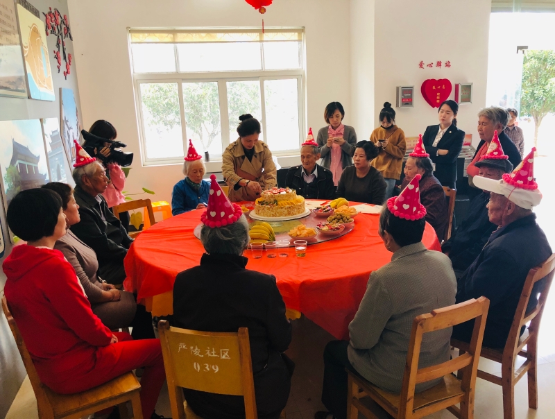 10余位年逾古稀的老人在子女的陪同下圍坐在一起,唱生日歌、許生日愿望、吹生日蠟燭……社區(qū)工作人員將蛋糕切開,一塊塊送到老人手中,老人們有說有笑地吃著蛋糕,樂得合不攏嘴。
