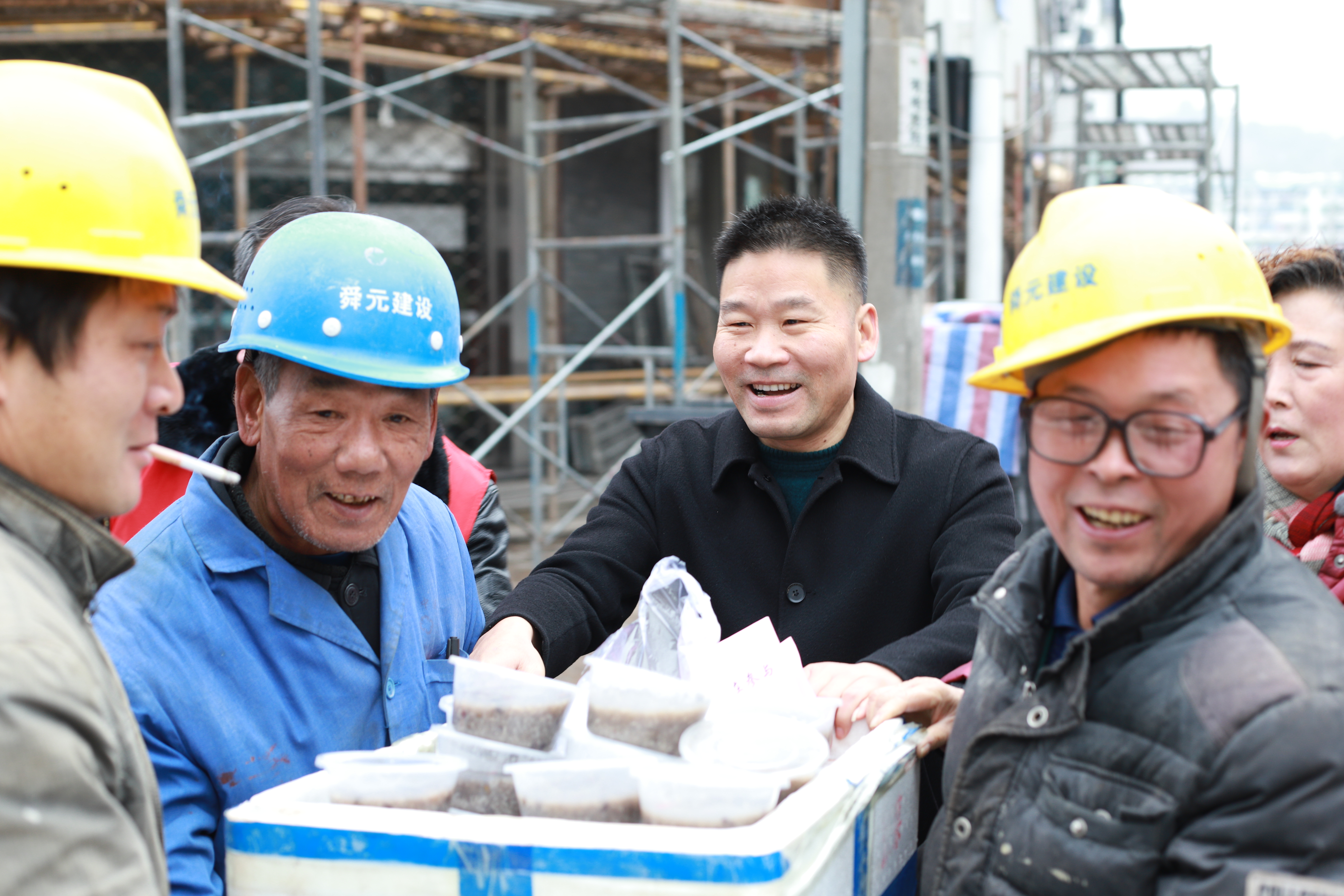 當天一大早,寶華洲社區(qū)工作人員就將精心準備的臘八粥分碗裝好,志愿者們走進梅花中路、后歷路、東西入城口、鎮(zhèn)政府路段、玉帶河區(qū)域等梅城鎮(zhèn)美麗城鎮(zhèn)建設工地,將一碗碗早上剛熬好的熱氣騰騰的臘八粥送給奮戰(zhàn)在建設新時代美麗城鎮(zhèn)、再現(xiàn)千年古府新面貌的一線工地上民工們的手中,民工們迫不及待地嘗上一口,甜甜地滋味從口中彌漫開來,臉上也綻放出美麗的笑容。
