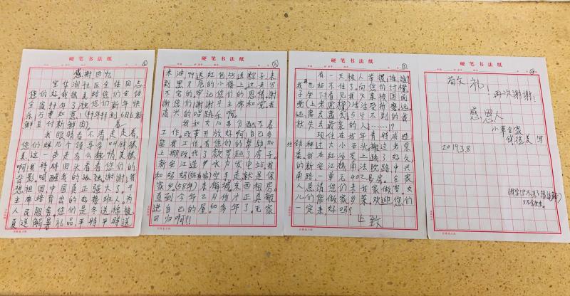 這是一封來自社區(qū)80多歲老人錢德美2019年3月8日寫給寶華洲社區(qū)工作人員的感謝信!雖然這封感謝信沒有華麗的辭藻,也有點(diǎn)語句不通,但字里行間洋溢著濃濃的感激之情,這跟社區(qū)工作人員平時(shí)一點(diǎn)一滴、誠誠懇懇的工作是分不開的。社區(qū)工作者的真誠服務(wù)獲居民的感謝,居民送來的感謝信不僅是對(duì)社區(qū)工作的肯定,同時(shí)也鞭策社區(qū)工作者繼續(xù)發(fā)揚(yáng)為人民服務(wù)的精神,為美好和諧的社區(qū)建設(shè)而努力。
