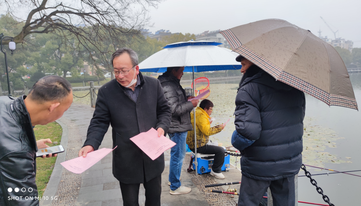 1月22日上午,寶華洲社區(qū)工作人員對轄區(qū)范圍內(nèi)的西湖、玉帶河水域邊垂釣人員和居民發(fā)放《關于在東湖、玉帶河、西湖沿岸禁止垂釣的告知書》,向他們宣傳從即日起,該區(qū)域列入明年5A級景區(qū)創(chuàng)建,嚴禁私人進行垂釣以及捕魚行為,如有違反行為,將按照《中華人民共和國水法》、《中華人民共和國漁業(yè)法》和《中華人民共和國治安管理處罰法》等相關法律法規(guī)進行處罰。