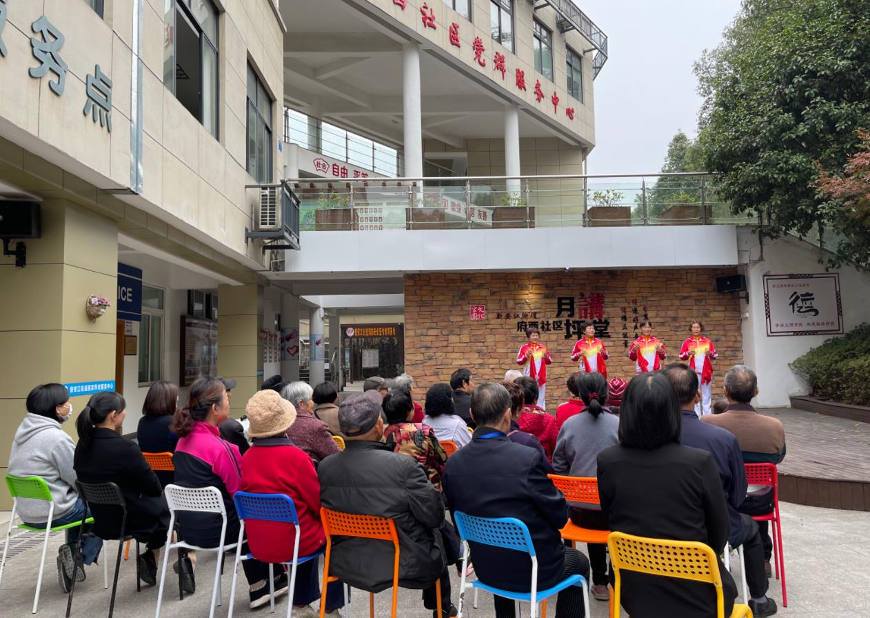 11月19日上午,在府西社區(qū)月坪講堂上,社區(qū)文化隊的隊員們統(tǒng)一服裝、手拿快板,生動宣講黨的十九屆六中全會精神。富有節(jié)奏感的快板說詞,引來現(xiàn)場群眾陣陣掌聲,現(xiàn)場氛圍十分熱烈。