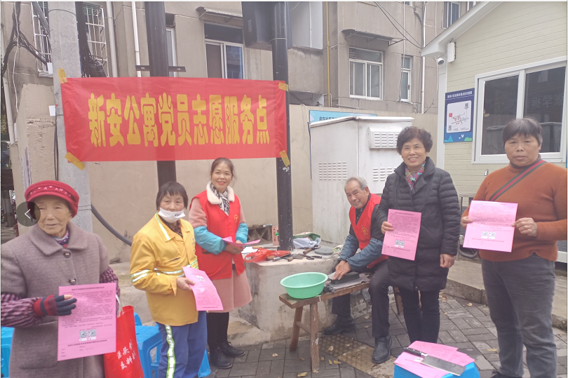 “嚓、嚓嚓……”磨刀的聲音在政法路上響起,11月30日上午,新安公寓黨支部在這里成立了便民志愿服務(wù)點(diǎn)。
