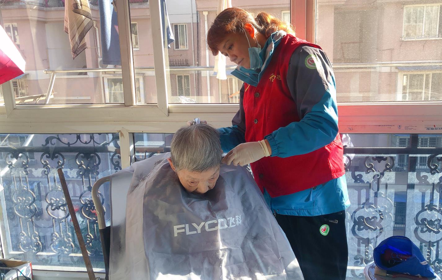 “謝謝你們,我老伴的頭發(fā)理好了,就是她上周上門(mén)幫忙理的,老婆子讓我到社區(qū)道個(gè)謝!”