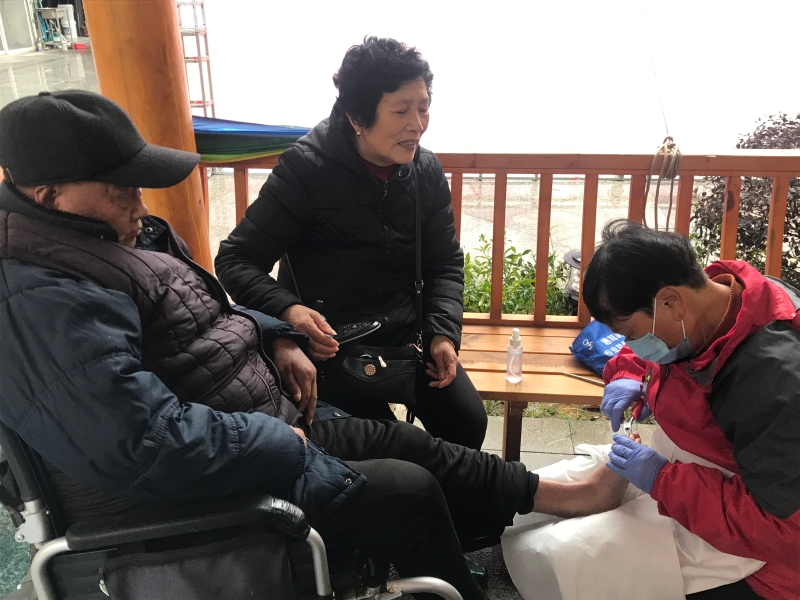 今天的活動(dòng)除了在焦山小廣場(chǎng)一個(gè)中心點(diǎn)外,志愿者們又分出五個(gè)小分隊(duì),冒雨上門(mén)為行動(dòng)不便的老人理發(fā)、洗頭、修剪指甲,按摩等。社區(qū)居民李阿姨開(kāi)心地表示,志愿者利用休息時(shí)間來(lái)為我躺在床上的婆婆剪頭發(fā),真是便民利民,足不出戶就解決了我們家的難題,臨走時(shí)還握著志愿者的手,連聲說(shuō)著感謝。