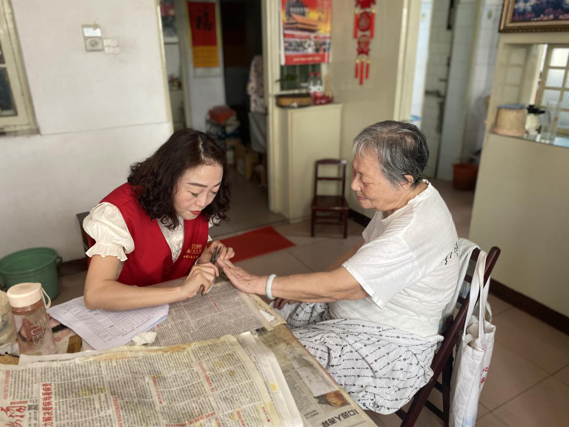 每到一處,工作人員及志愿者和老人聊家常,仔細(xì)詢問(wèn)老人身體狀況和日常起居情況,記錄老人生活中的難題,并積極給予相應(yīng)的幫助。向老人及家屬宣傳暑熱容易造成的危害、中暑預(yù)防、飲食衛(wèi)生等事項(xiàng),叮囑老人在炎熱季節(jié)注意自身身體情況、居家用電用氣安全及節(jié)水用水問(wèn)題,有困難就向社區(qū)反映。