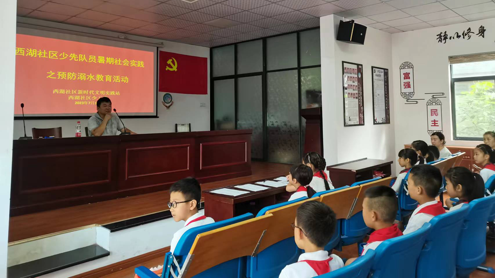 炎炎夏日,下水游泳、嬉戲已成了大人和小孩一件有趣的活動,但其存在的安全隱患卻是令人擔(dān)憂的。為了提高少年兒童的安全意識,防范溺水事件發(fā)生,提高避險和自救能力,7月18日上午,壽昌鎮(zhèn)西湖社區(qū)組織開展“珍愛生命 預(yù)防溺水”安全教育活動。