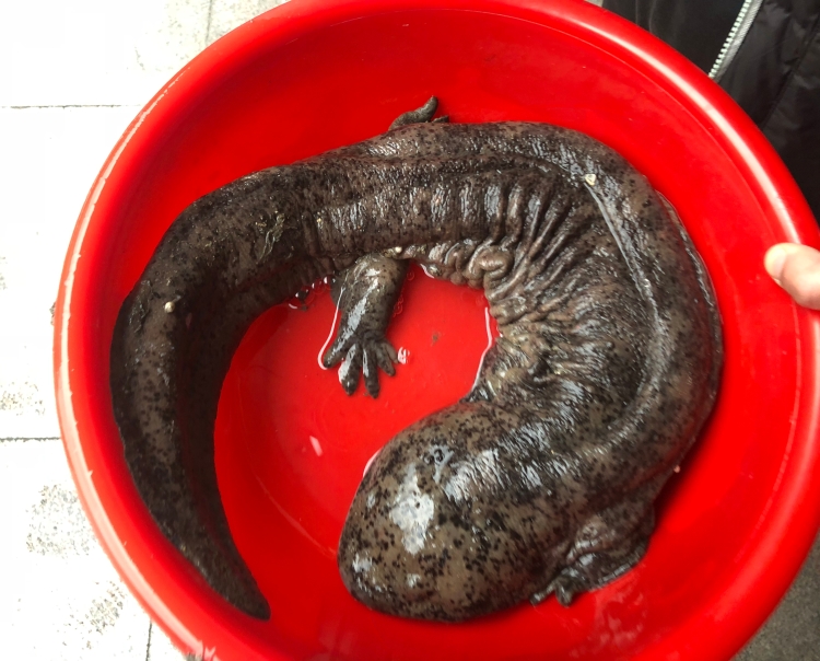 據(jù)野保站工作人員介紹,2018年12月26日傍晚,下涯鎮(zhèn)唐村村村民唐先生騎著摩托車回家,路過洋溪街道橡膠廠附近時(shí),突然發(fā)現(xiàn)路邊有一團(tuán)黑乎乎的東西,似乎還在蠕動。唐先生下車湊近一看,原來是一只長著四條腿的胖乎乎像魚又像大蜥蜴的動物,很像國家二級保護(hù)兩棲野生動物娃娃魚。當(dāng)時(shí)街上車流密集,唐先生擔(dān)心它被車撞到,便小心翼翼地抱起它,輕手輕腳放進(jìn)摩托車后備箱,一邊騎車一邊問路,輾轉(zhuǎn)來到了市野保站。