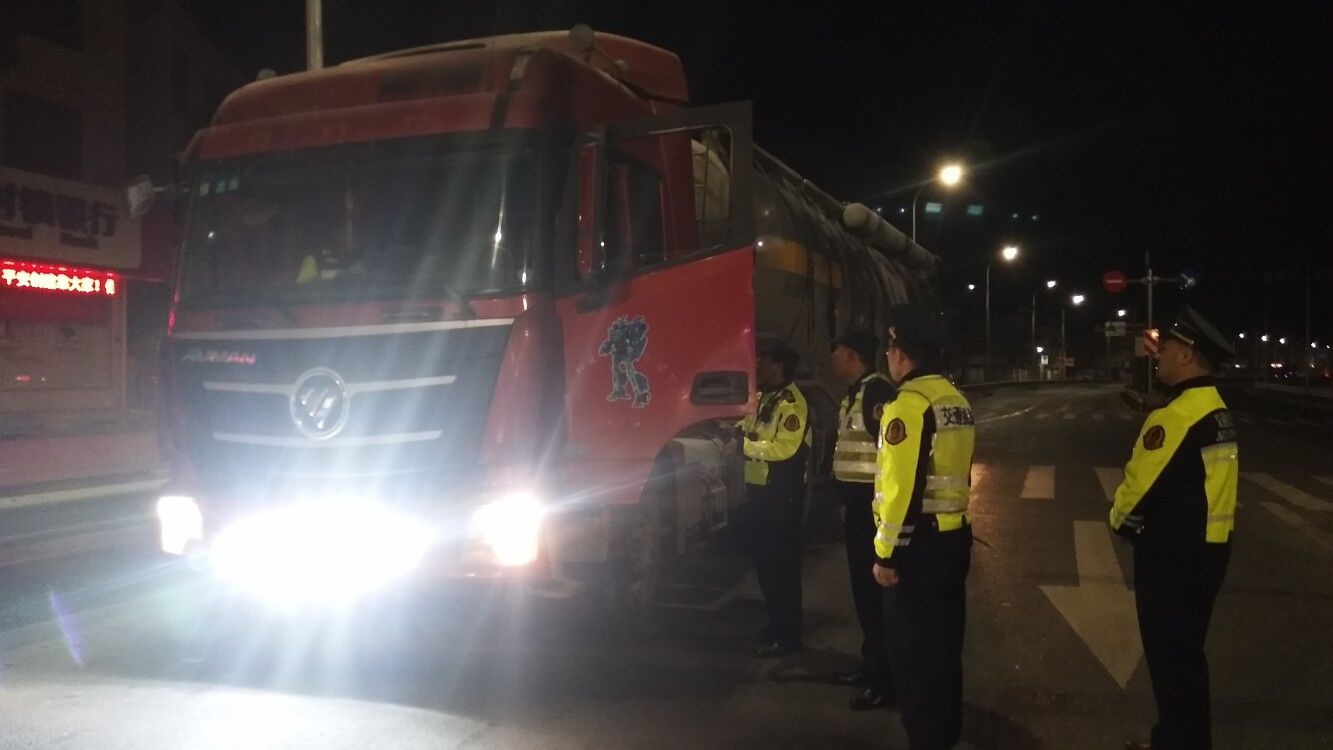10月20日凌晨2時,10名交通執(zhí)法人員在該水泥槽罐半掛車必經(jīng)的305省道航頭鎮(zhèn)路段布控,凌晨5時成功查獲這輛車牌號為浙G25697的水泥槽罐半掛車,只見該車保險杠位置加裝了6個高亮的強(qiáng)光大燈,車前方白茫茫一片,刺眼的燈光完全遮住了號牌。