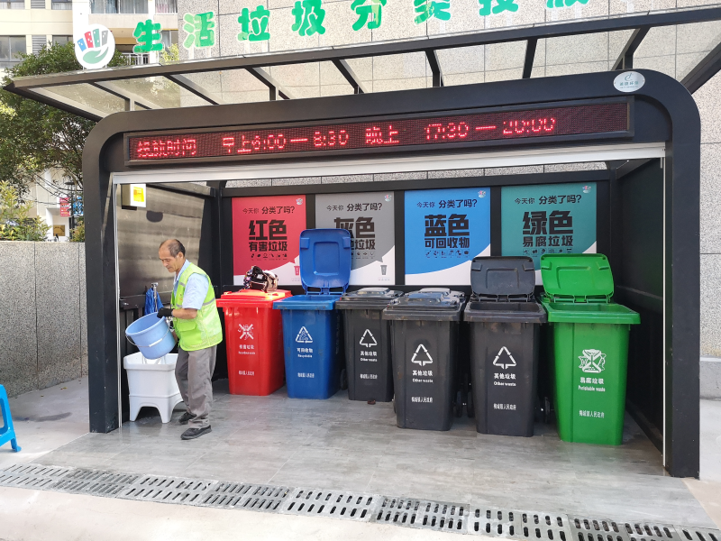 “這又是裝電,又是裝水,還裝上監(jiān)控,沒想到放垃圾桶的小房子都這么高級啊,我家房子都沒這么好呢,我得搞得干干凈凈的,以后啊,人們對垃圾站房的觀念要大大改觀咯!”查師傅一邊引導(dǎo)前來扔垃圾的本小區(qū)居民做好垃圾分類,一邊對我們說。