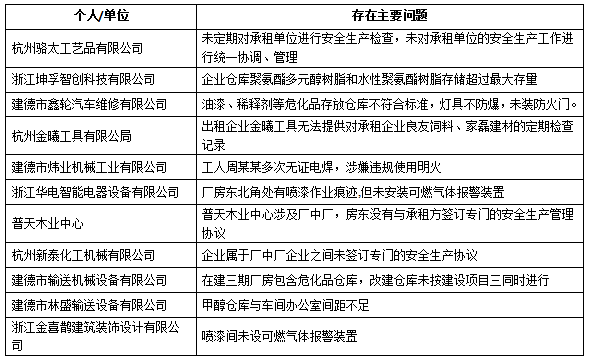 為嚴(yán)格落實生產(chǎn)經(jīng)營單位安全生產(chǎn)主體責(zé)任,依據(jù)《中華人民共和國安全生產(chǎn)法》及相關(guān)法律法規(guī),建德市應(yīng)急管理局現(xiàn)對安全生產(chǎn)隱患大排查大整治行動中行政處罰相關(guān)案例進行曝光。如發(fā)現(xiàn)企業(yè)安全生產(chǎn)隱患問題,請撥打12350舉報熱線,或建德市應(yīng)急管理局受理熱線0571-64780271。
