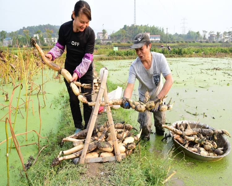 近日,在更樓街道于合村的田間,藕農(nóng)們忙著采收秋季菜藕,市場(chǎng)上每公斤售價(jià)10元,每天都有數(shù)百公斤的鮮藕銷往新安江、更樓等地市場(chǎng),深受消費(fèi)者喜愛。