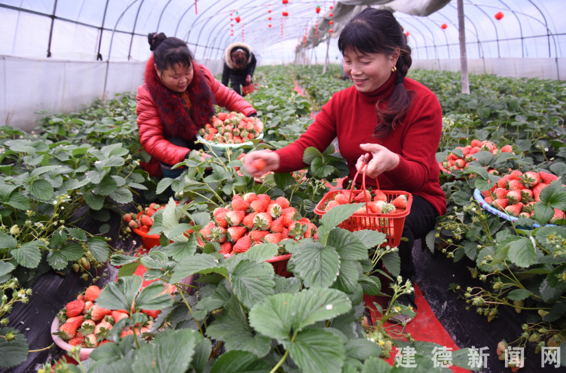 12月28日一早,在楊村橋鎮(zhèn)官路村梓木畈田間,種植大戶徐金仙正組織婦女在大棚里采摘草莓鮮果,每天采摘量達(dá)150多公斤,每公斤售價(jià)40元左右,十分暢銷。