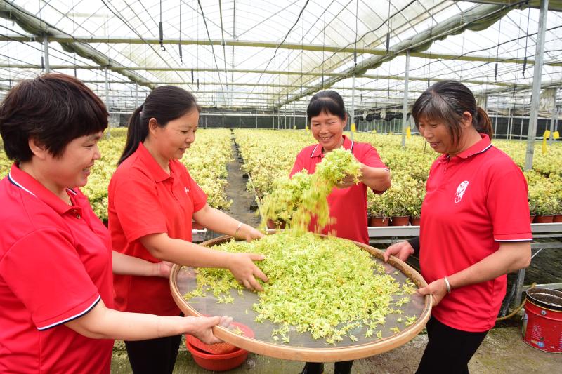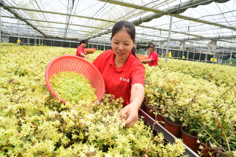 6月7日,在蓮花鎮(zhèn)齊平村的杭州九仙鐵皮石斛種植基地,員工們忙著采收一朵朵嫩黃色鮮花。自5月中旬開始,該基地種植的100多畝鐵皮石斛進(jìn)入盛花期,員工們忙著采收石斛鮮花,供應(yīng)各地市場,一直將到6月中旬結(jié)束。近年來,該鎮(zhèn) 大力發(fā)展“藥用+觀賞+采摘+康養(yǎng)”的中藥材產(chǎn)業(yè),引導(dǎo)農(nóng)戶實(shí)施鐵皮石斛標(biāo)準(zhǔn)化生產(chǎn),打造融農(nóng)業(yè)、文化和旅游于一體的現(xiàn)代農(nóng)業(yè)中醫(yī)藥健康旅游示范基地,目前該鎮(zhèn)已種植鐵皮石斛300余畝,帶動當(dāng)?shù)亟傥淮迕窬蜆I(yè)增收。