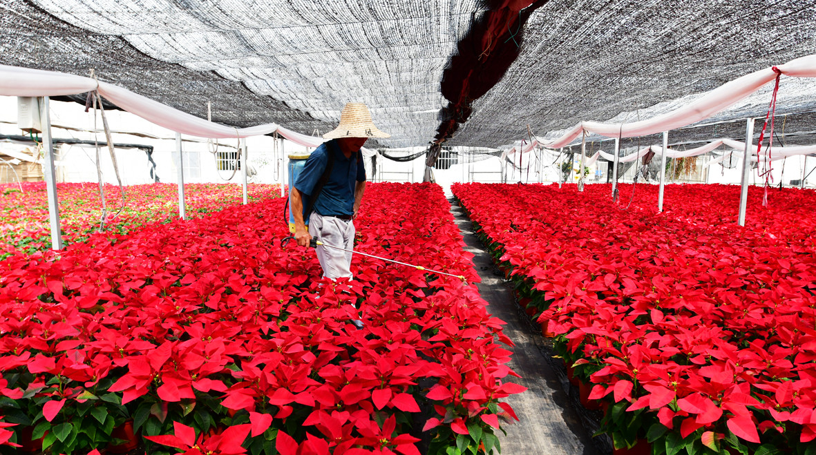 隨著杭州亞運會以及國慶、中秋佳節(jié)的臨近,鮮花銷售迎來旺季。連日來,航頭鎮(zhèn)精品鮮花種植基地忙著對3萬多盆一品紅鮮花進(jìn)行后期培育管理,力爭培育出更好的精品鮮花,用于滿足接下來花卉市場需求。圖為花農(nóng)正在基地里對一品紅鮮花進(jìn)行培育管理。