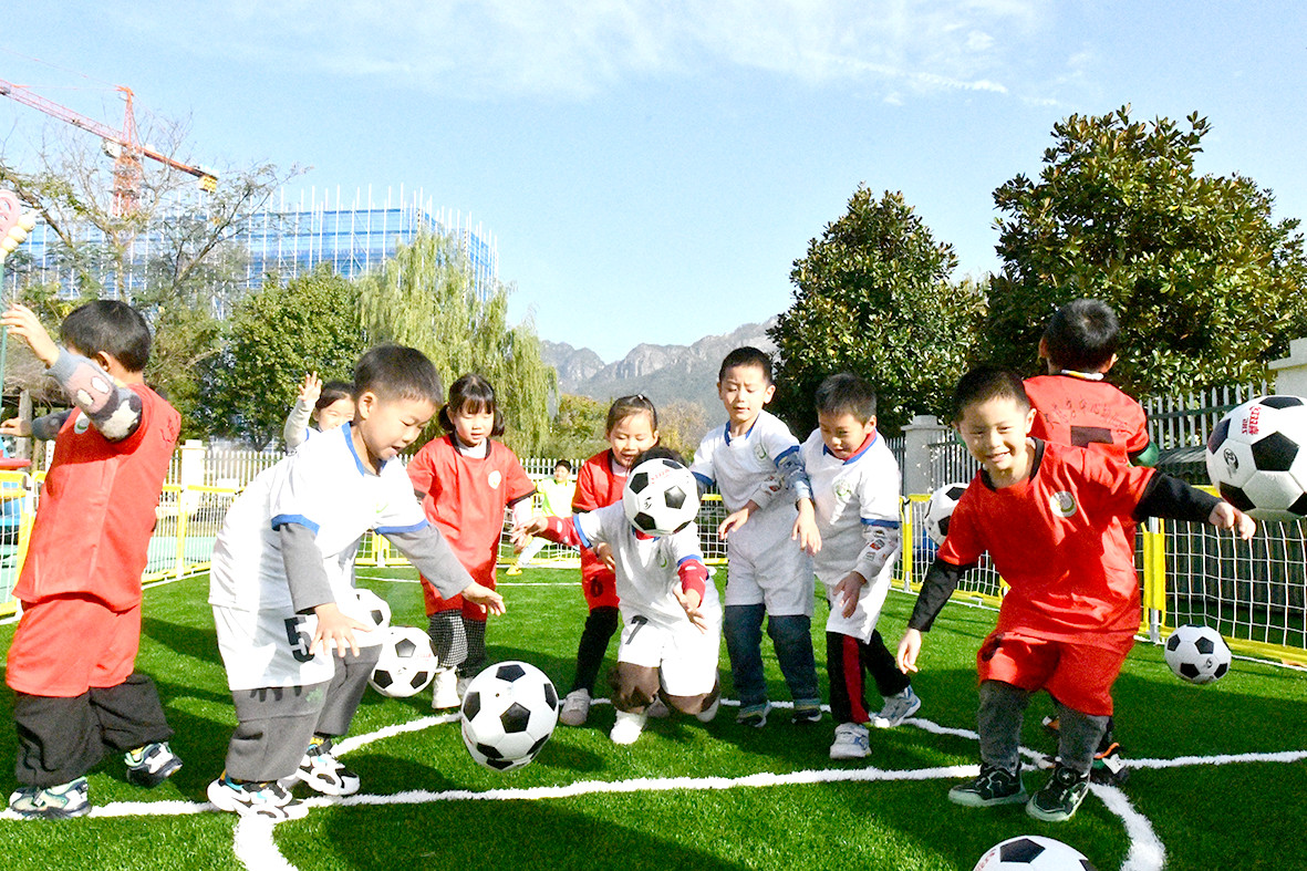 今年9月,大慈巖中心幼兒園在市慈善總會(huì)“善德建業(yè)”慈善信托項(xiàng)目的支持下,在校園內(nèi)新建了一個(gè)200多平方米的足球場(chǎng),讓偏遠(yuǎn)農(nóng)村的幼兒和城里的孩子一樣享有自己的足球運(yùn)動(dòng)場(chǎng),進(jìn)一步豐富了校園文體生活。圖為該園的孩子們?cè)趰湫碌淖闱驁?chǎng)上開(kāi)心地踢球。