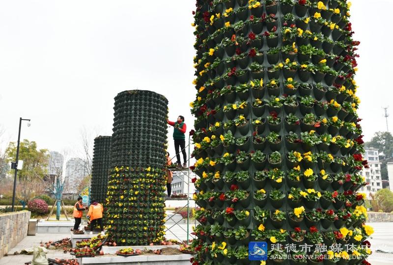 日前,在新安江街道府前廣場,工人們正在對圓形花柱置換三色堇花草品種。據(jù)悉,此次共對府前廣場十余個圓形花柱置換花草9000株左右,以鮮艷的色彩點綴市容,扮靚城市環(huán)境,喜迎龍年新春的到來。
